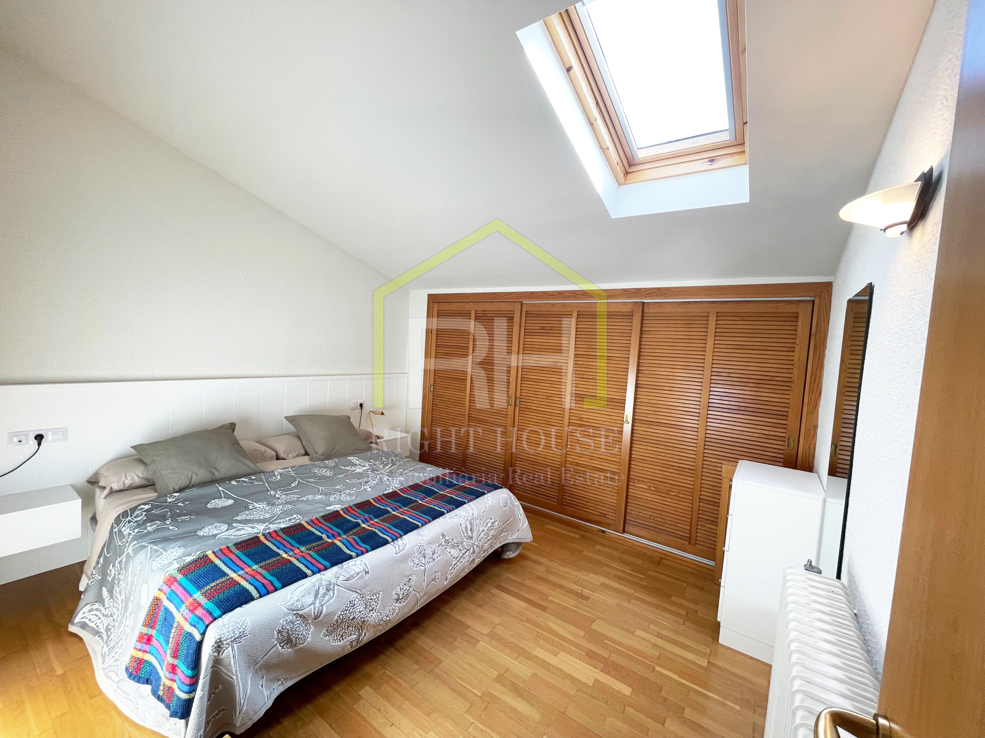 disposa de 5 habitacions (4 d´elles dobles) totes amb armaris i velux recent posades amb comandament a distancia . 3 banys complets amb plat de dutxa (estat molt bona conservació ) , es podria adaptar un dels banys per fer una suite .