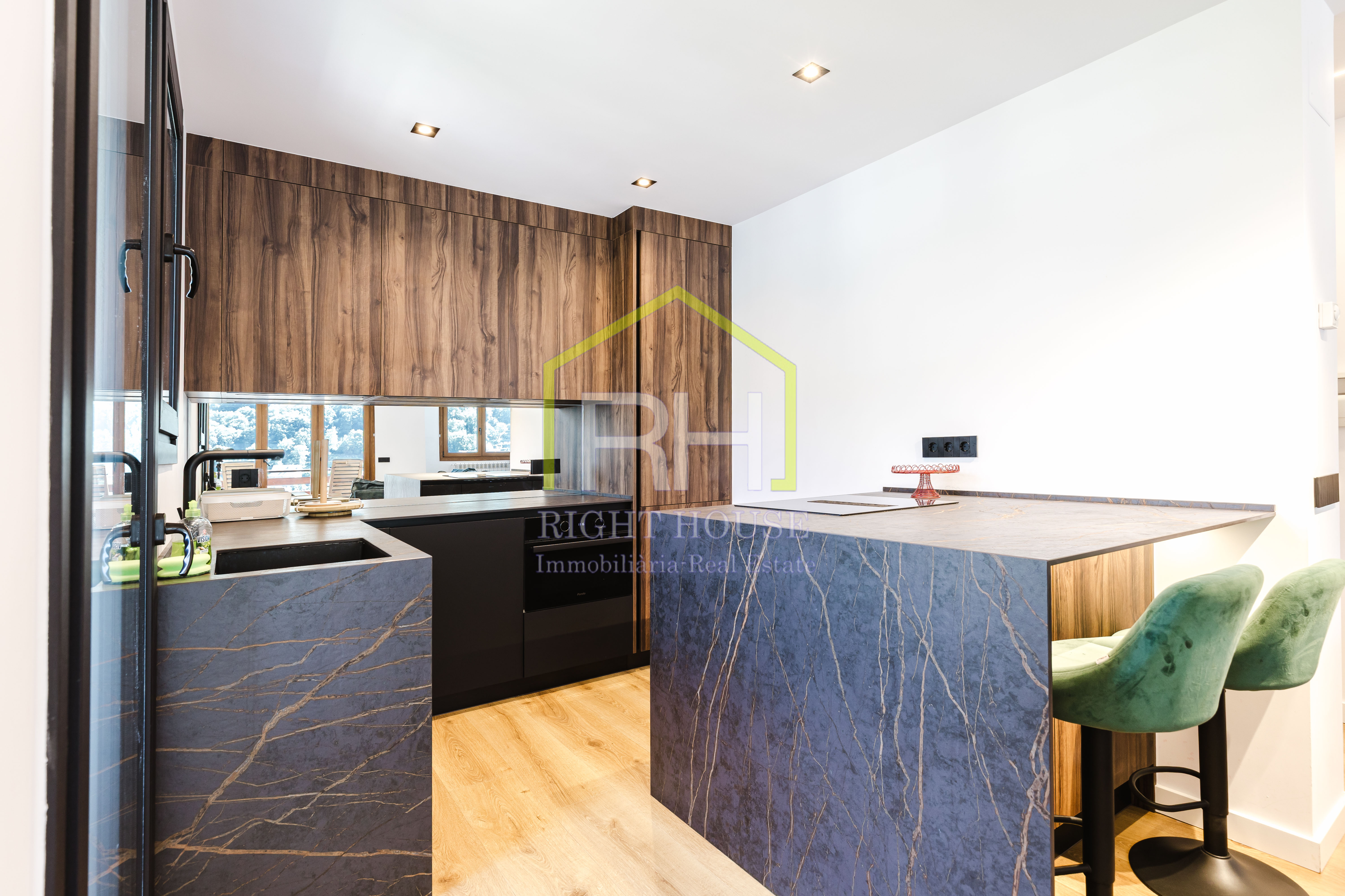 Presentamos este magnifico ático en una de las zonas mas reconocidas de Escaldes – Engordany. Se trata de un piso de una superficie construida de 100 m2 distribuido en dos habitaciones dobles y dos baños completos. Destacamos la gran luminosidad del piso. Se trata de un piso recien reformado y amueblado que tiene todo lo que necesitas para entrar a vivir. El piso incluye una plaza de garaje en la misma finca.