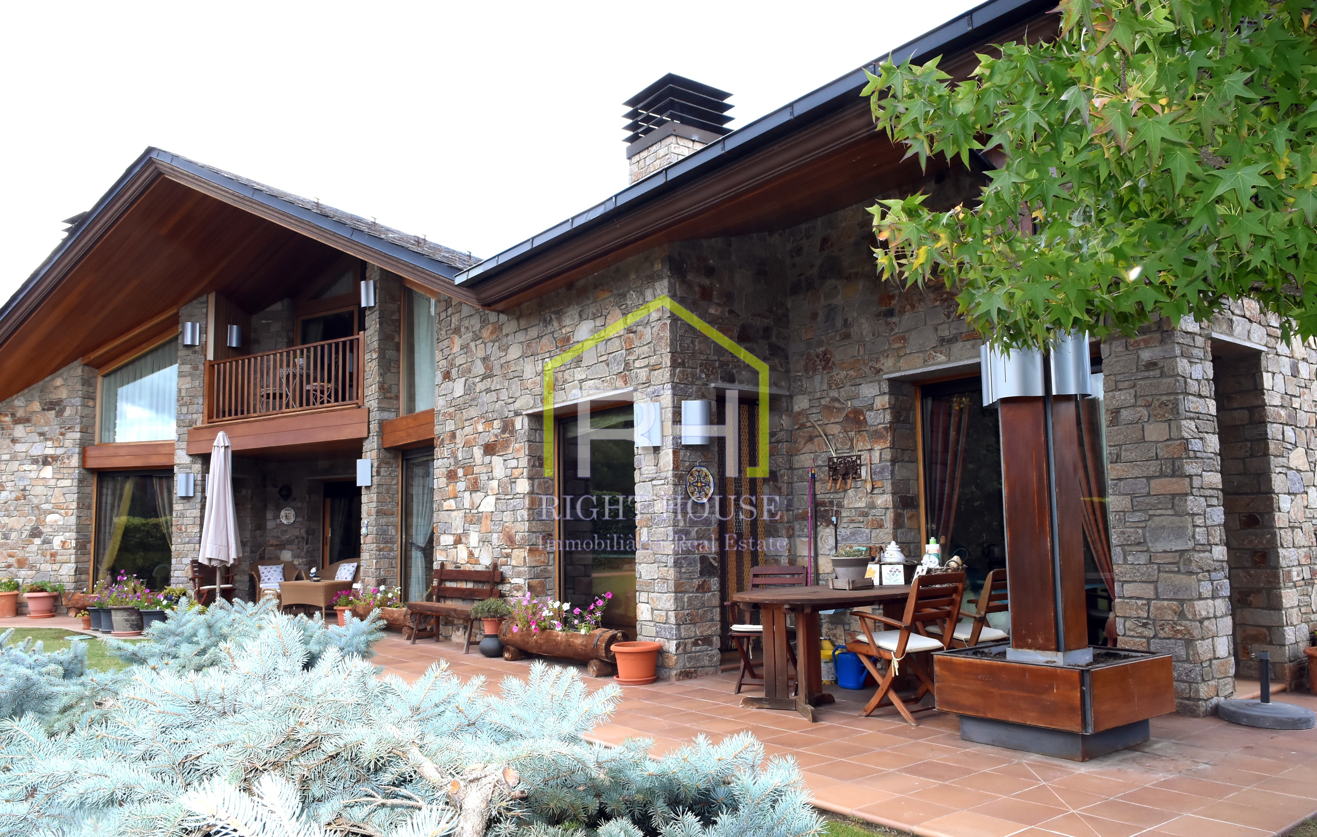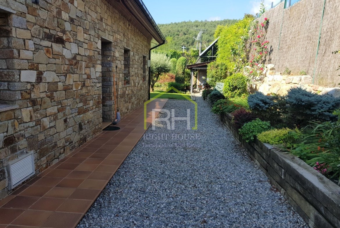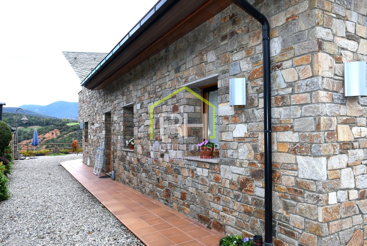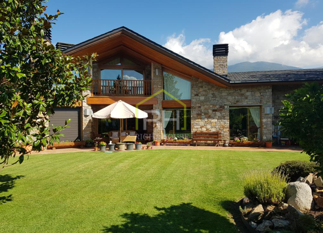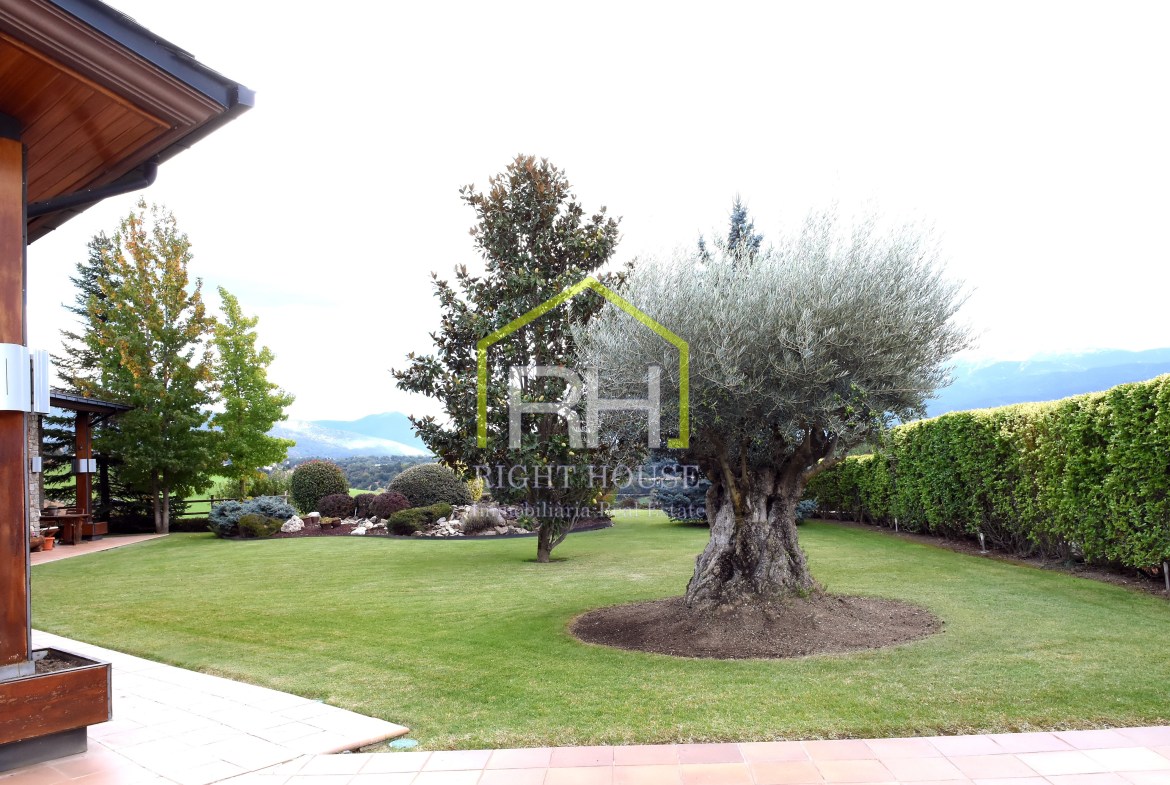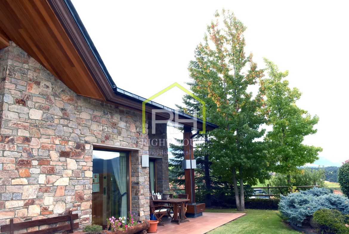 Magnífica propietat amb vistes panoràmiques, situada en una de les zones residencials més exclusives d’Aravell. S’ubica en un entorn de tranquil·litat i envoltada de natura. La seva orientació és perfecta per a gaudir de les màximes hores de sol durant el dia. Disposa de 1443m2 de parcel·la i 640m2 construïts, envoltada d’un ampli jardí amb barbacoa, zones verdes molt ben cuidades i amb moltes possibilitats. La vivenda en qüestió consta de tres plantes i és completament exterior. La planta baixa està formada per un rebedor; un ampli saló-menjador amb una preciosa llar de foc de pedra que li dona un toc de disseny; una gran cuina amb acabats de qualitat, totalment equipada; quatre dormitoris dobles molt espaiosos dels quals un és tipus suite amb bany i un vestidor. Dos banys complets, un d’ells amb banyera y zona de bugaderia. Cal destacar que totes les estances de la planta baixa compten amb sortida al jardí. A la segona planta hi ha un altell amb moltes possibilitats, utilitzat com a sala de relax amb llar de foc de pedra i un balcó amb vistes sobre el jardí. I per acabar, la planta soterrània, consta amb un gran garatge, una sala de maquinària i dos trasters. Consta també amb plaques solars, domòtica i bomba de calor.
