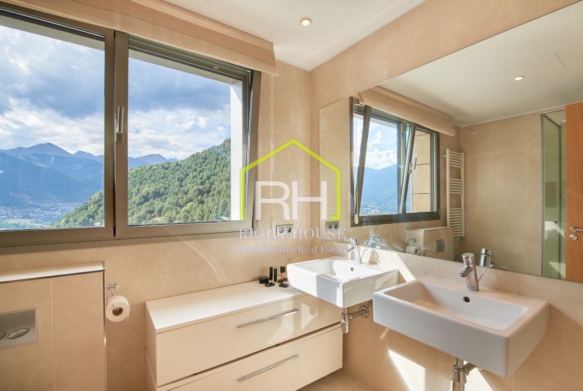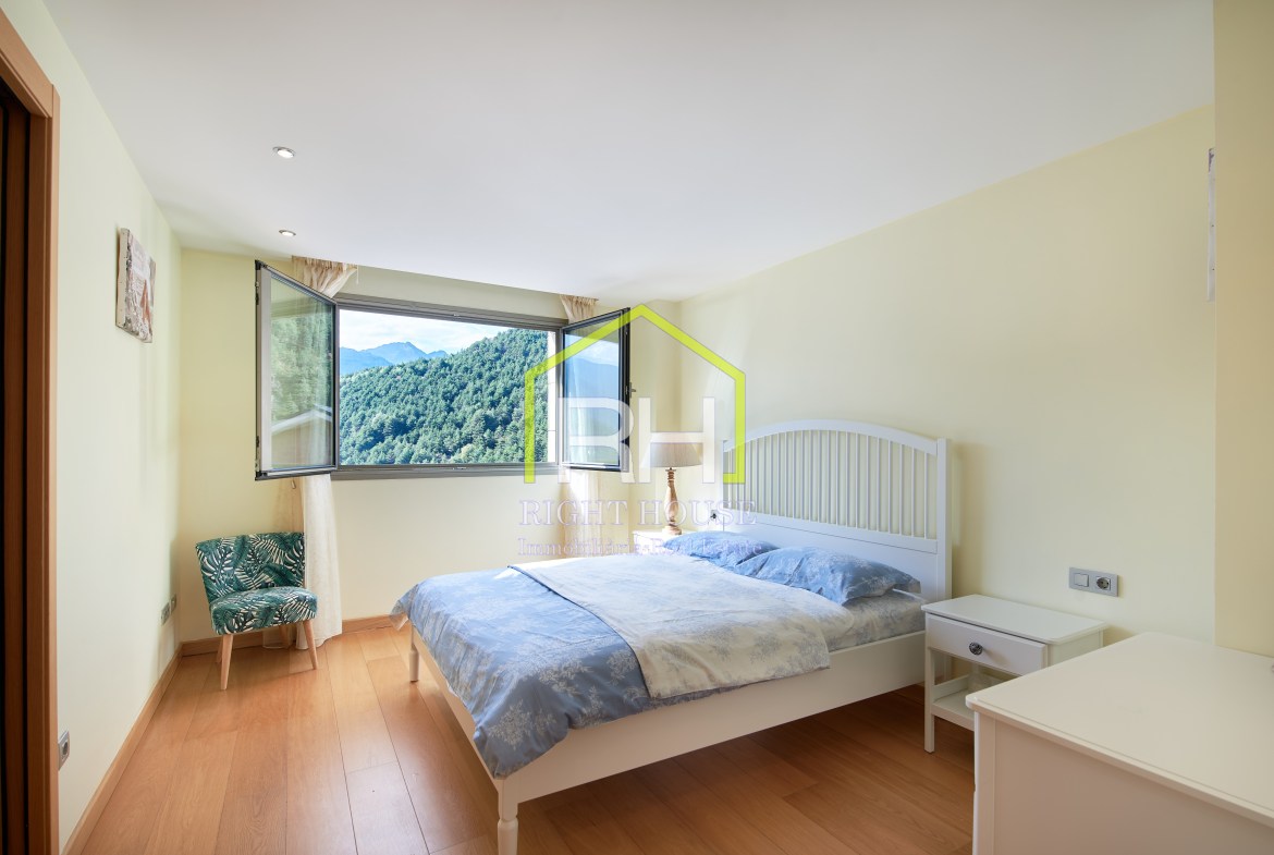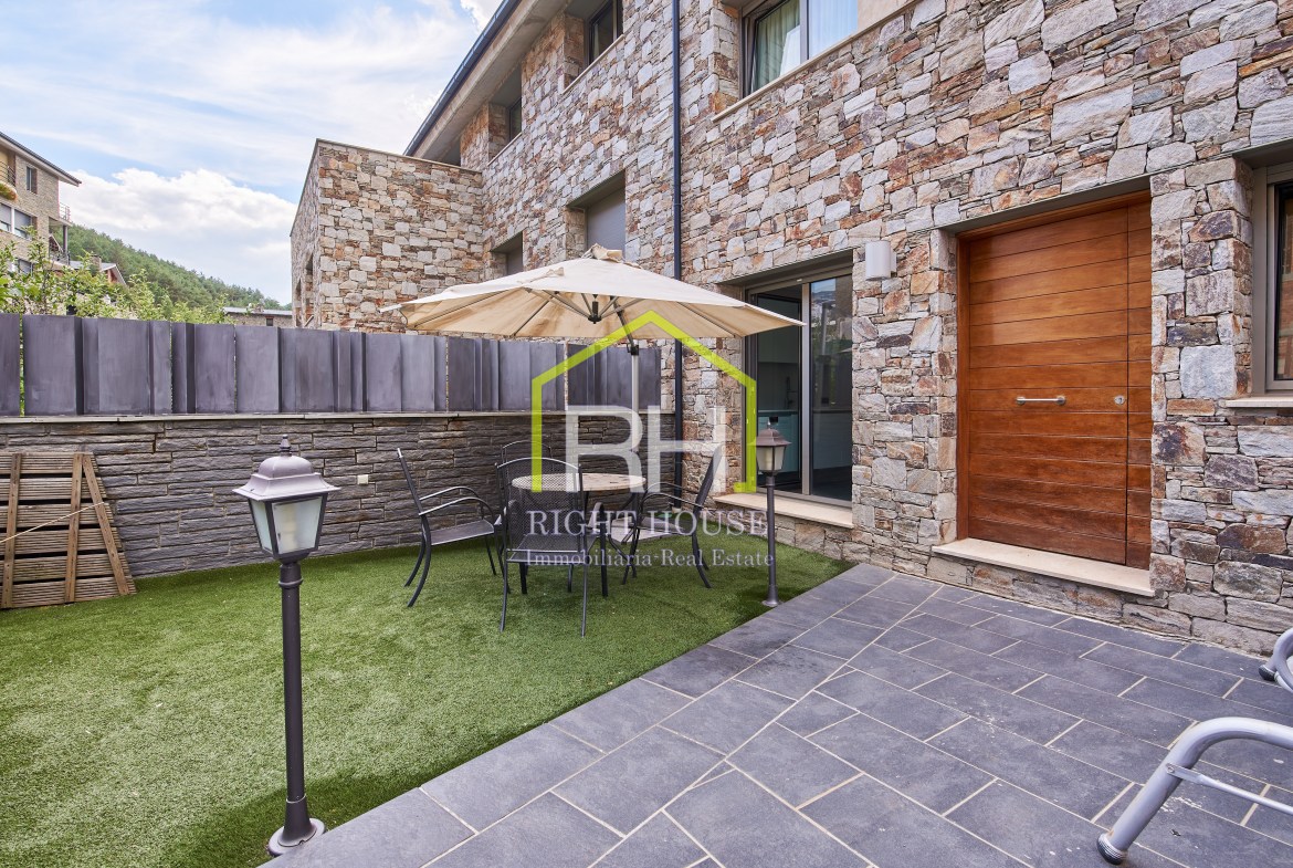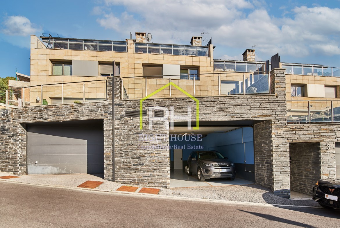 Casa adossada exclusiva amb molt encant i amb totes les comoditats. Sol i vistes panoràmiques. Disposa d’uns 200m2 distribuïts en un gran saló menjador amb llar de foc i sortida a terrassa i jardí d’uns 70m2; cuina de disseny, tancada i equipada amb sortida exterior. Disposa també, de cinc dormitoris dobles, dels quals un dos son tipus suite amb vestidor i tots equipats amb grans armaris. A sotacoberta també gaudireu d’una terrassa d’uns 17m2, amb magnífiques vistes. Aquesta casa es caracteritza per els seus espais oberts i d’un disseny molt pràctic i sostenible, per gaudir-ne. Està equipat amb aerotèrmia, terra radiant, parquet natural i ascensor. I no s’ho perdi, a la planta baixa trobem un ampli garatge per a quatre vehicles i zona d’aigua amb jacuzzi, sauna i bany turc, per amenitzar els vostres dies. Se’ns dubte, un dels llocs més encantadors d’Andorra, envoltat de natura i amb totes les comoditats per al dia a dia. Poseu-vos en contacte amb nosaltres per obtenir més informació o concertar una visita.
