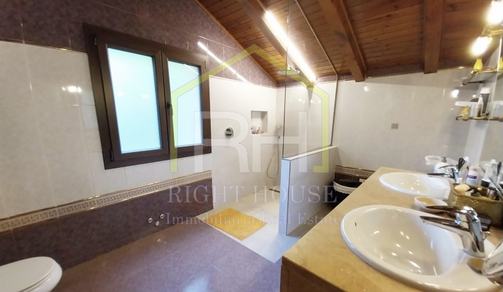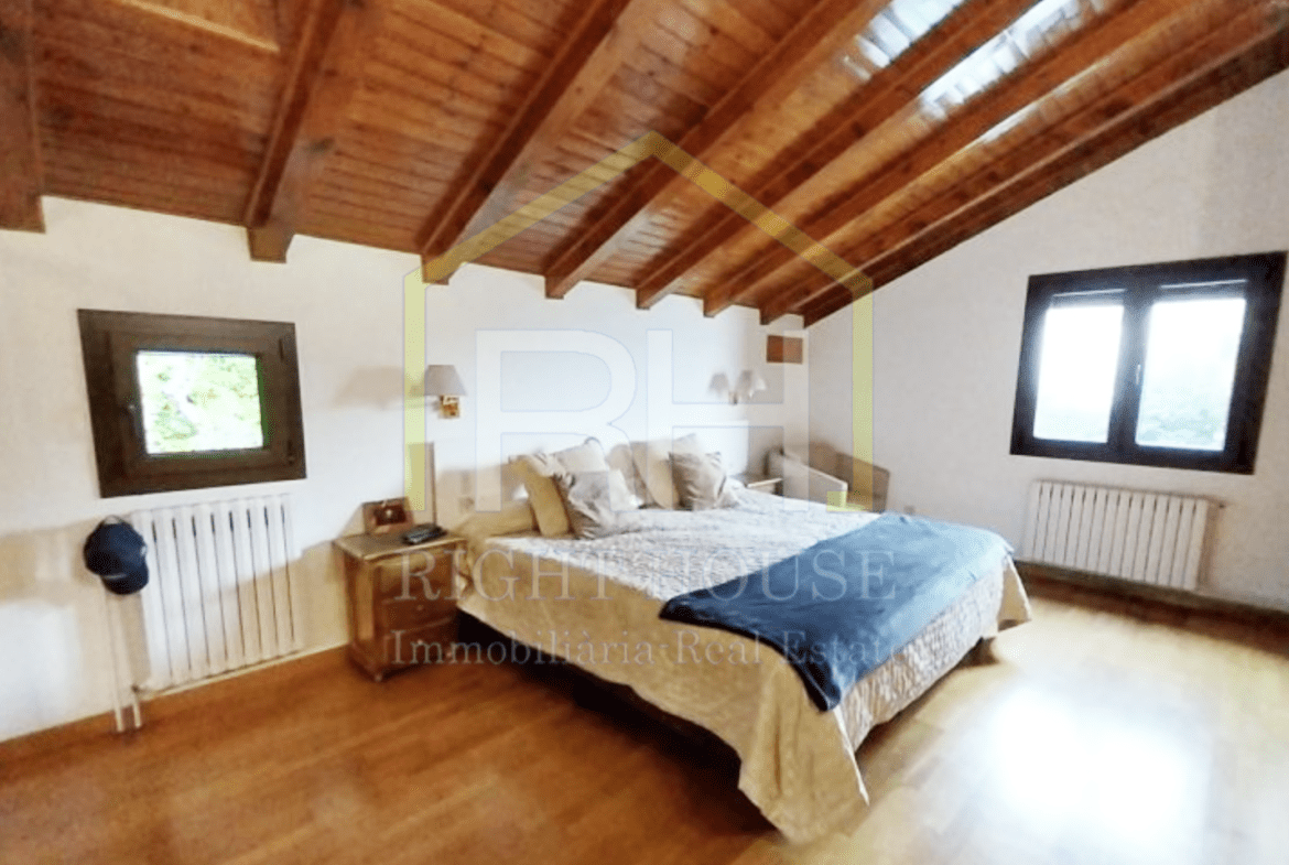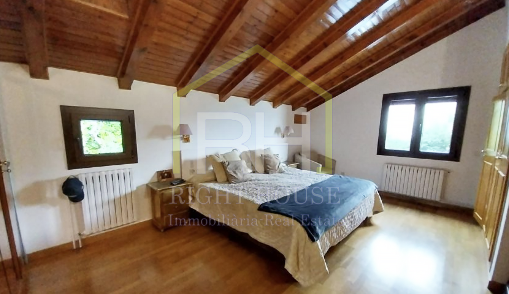 Disposa de 4 habitacions dobles amb suite repartides en les 3 alçades de la casa . Gran saló menjador amb llar de foc i cuina equipada , moderna. Pàrquing per a tres vehicles .Calefacció aerotèrmica.